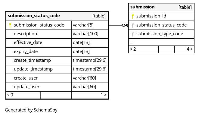 | submission_status_code_pk | Primary key | Asc | submission_status_code |